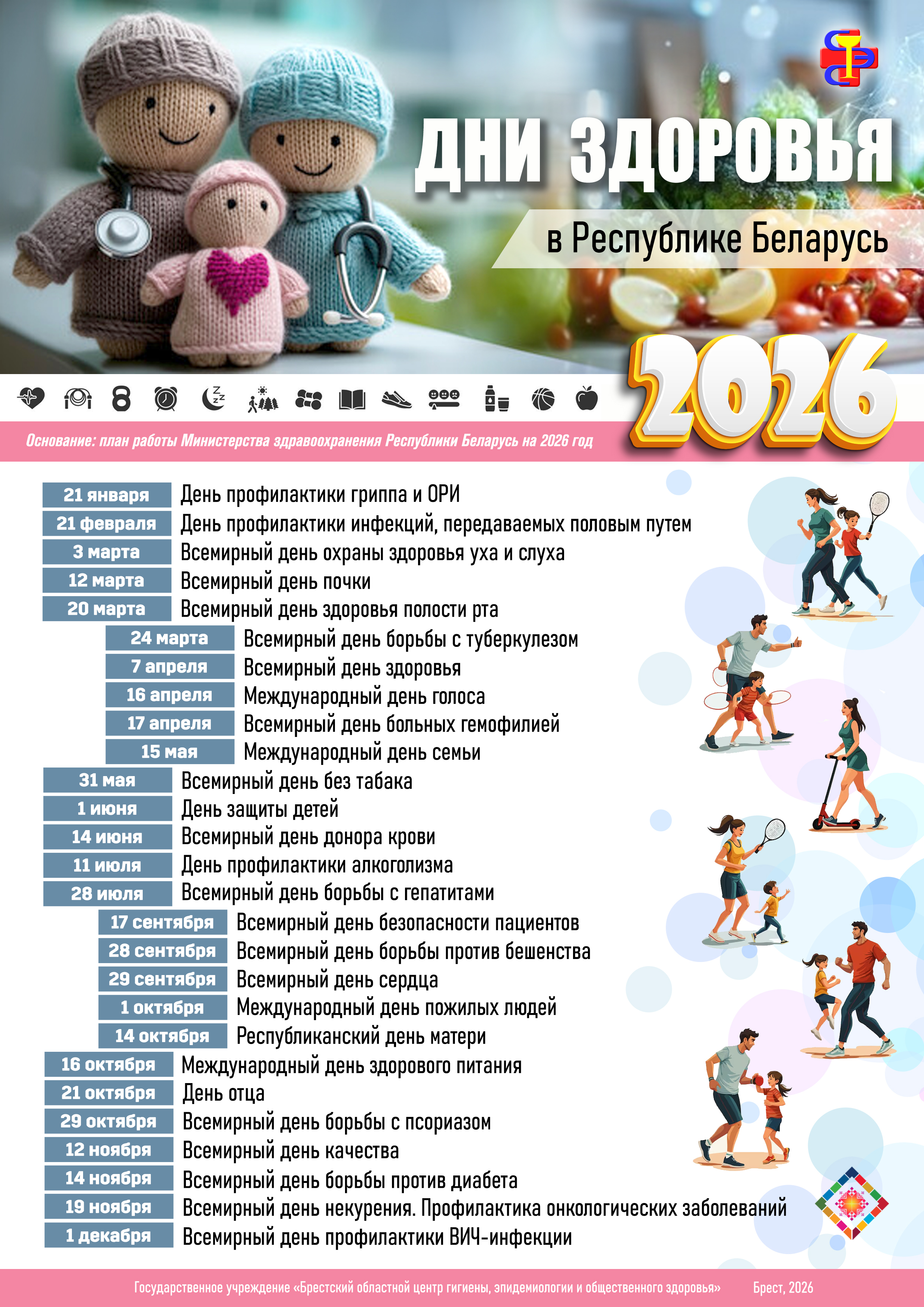 Дни здоровья — 2026 (листовка Брестского ОЦГЭиОЗ)