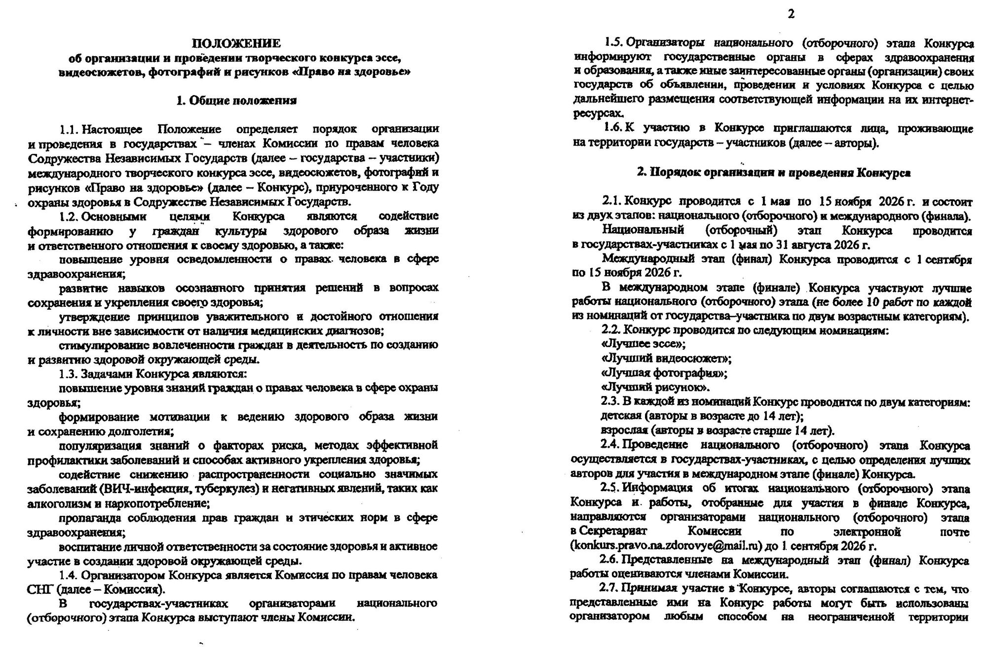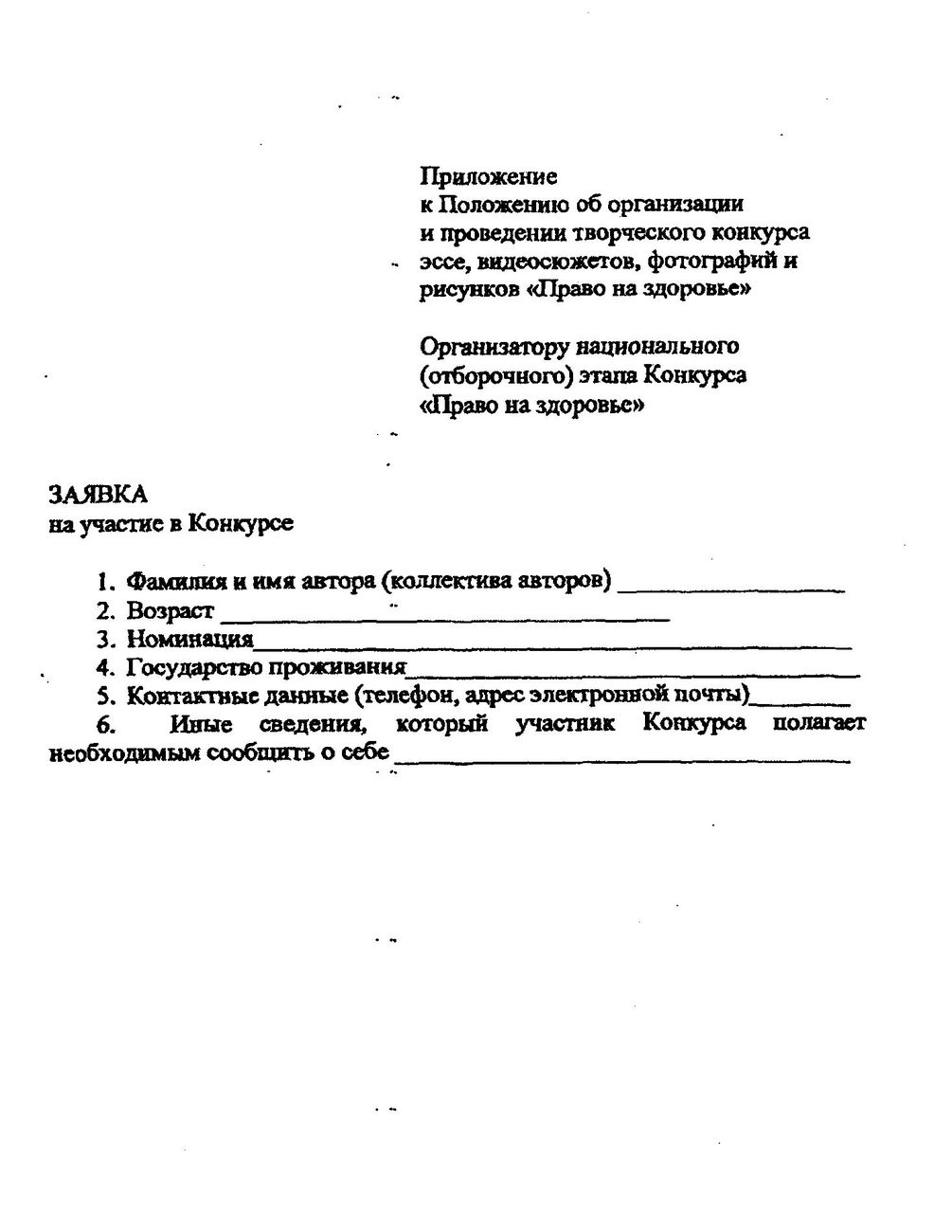 Положение об организации и проведении творческого конкурса эссе, видеосюжетов, фотографий и рисунков «Право на здоровье».